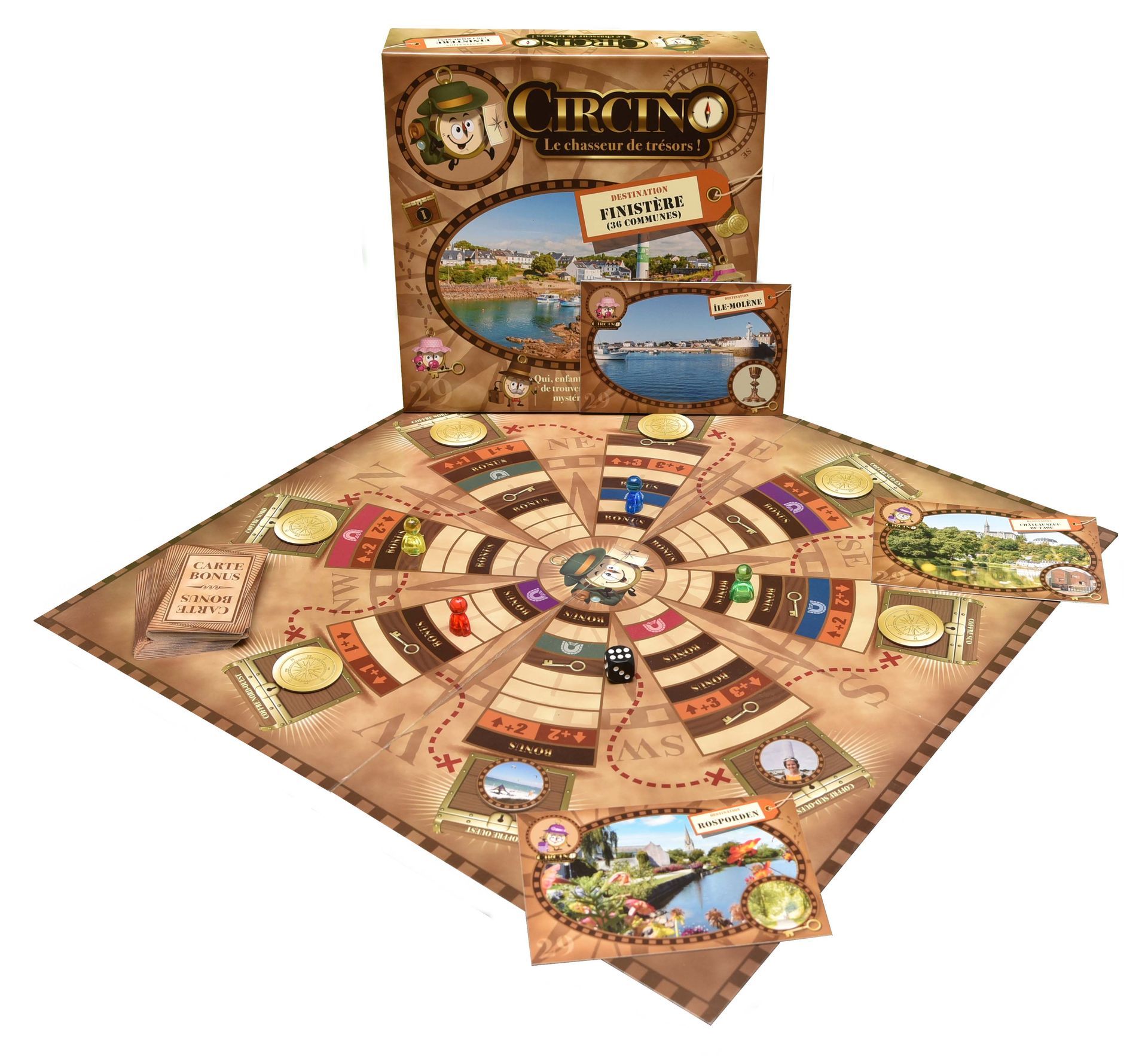 Tel est donc l'objectif recherché par ce jeu de plateau de la famille Créacom Games Circino, le Chasseur de Trésors - Destination Finistère... en plus de permettre aux plus petits, leurs parents et leurs grands-parents d'occuper d'agréables moments de partage dans la convivialité et la bonne humeur.