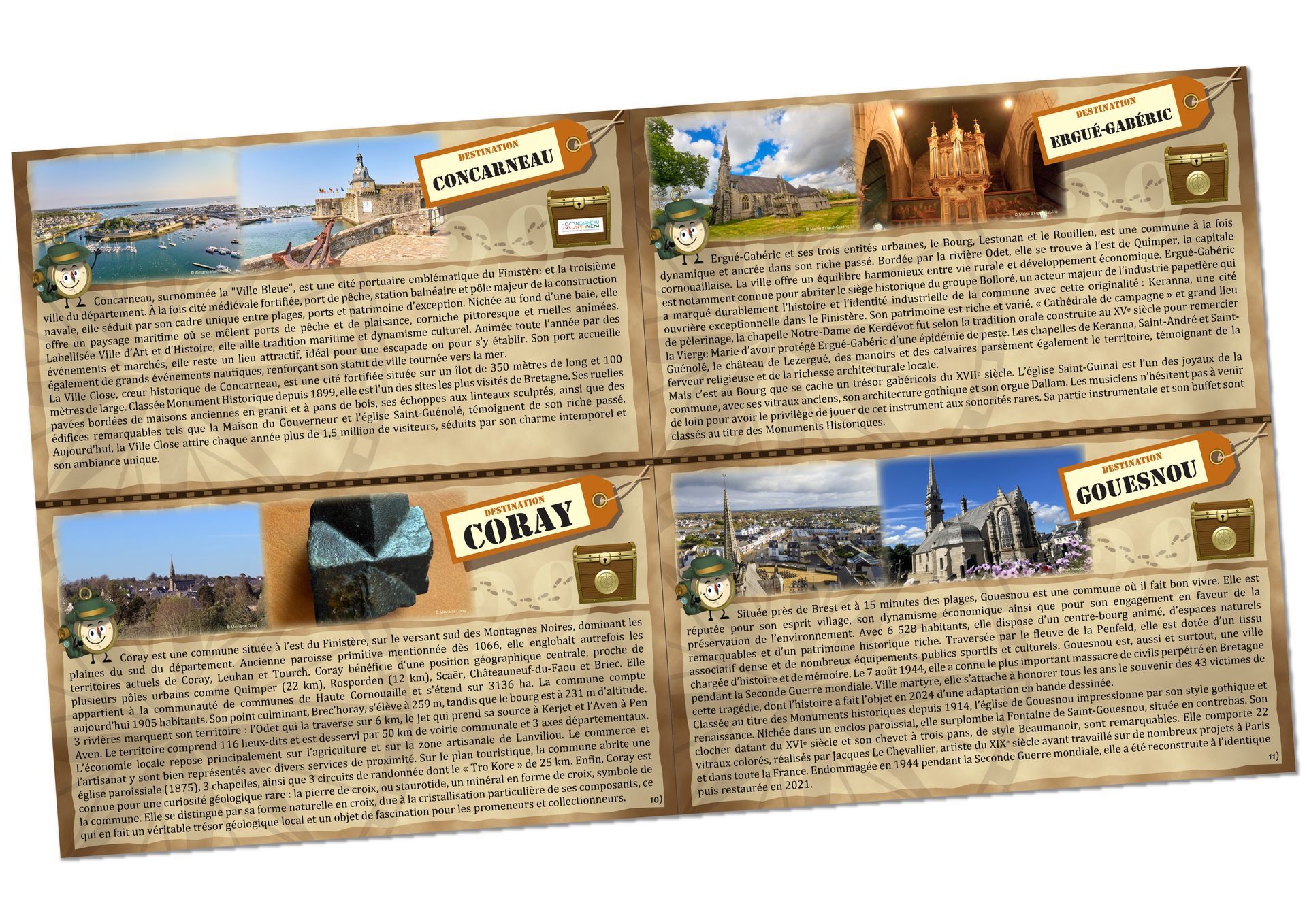 NOUVEAU: à l'intérieur du jeu, avec la règle, un livret permet d'en découvrir plus sur chacune des communes mises en avant dans cette version Finistère. Sur une 1/2 page, chaque mairie a rédigé son propre texte de présentation afin de vous parler en toute simplicité d'elle.