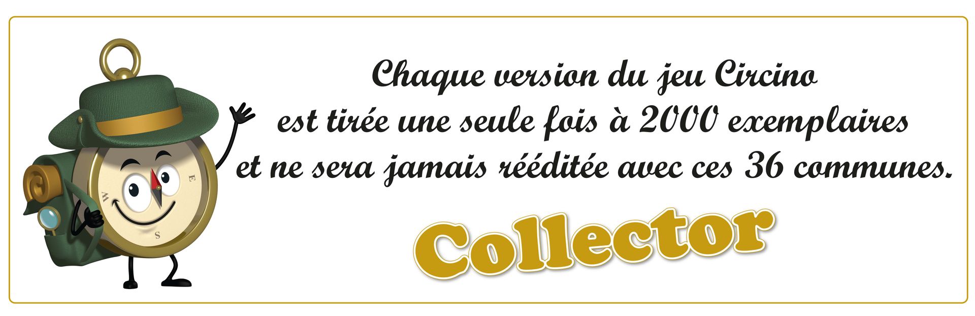 Tel est donc l'objectif recherché par ce jeu de plateau de la famille Créacom Games Circino, le Chasseur de Trésors - Destination Gironde... en plus de permettre aux plus petits, leurs parents et leurs grands-parents d'occuper d'agréables moments de partage dans la convivialité et la bonne humeur.