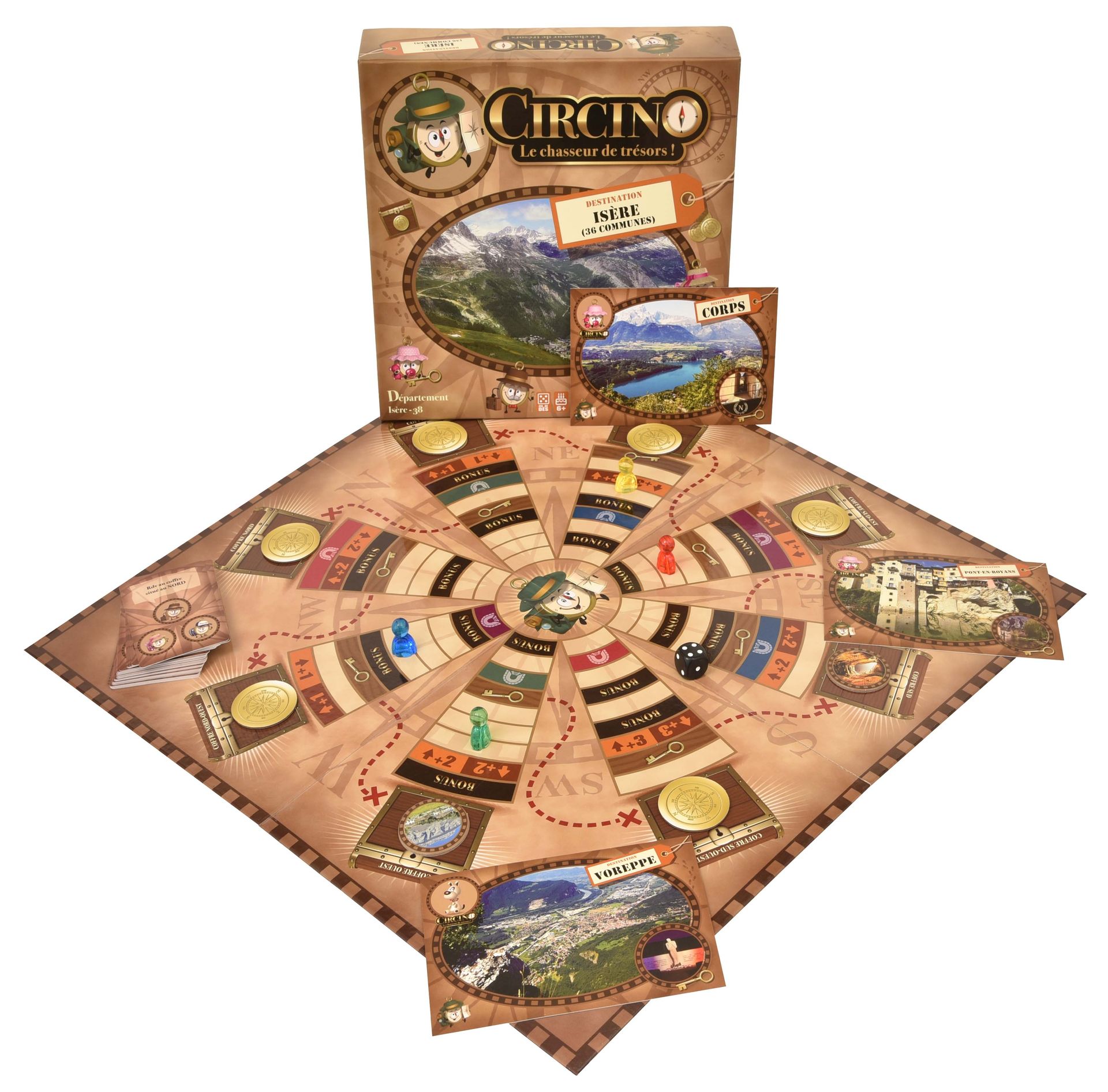 Tel est donc l'objectif recherché par ce jeu de plateau de la famille Créacom Games Circino, le Chasseur de Trésors - Destination Isère... en plus de permettre aux plus petits, leurs parents et leurs grands-parents d'occuper d'agréables moments de partage dans la convivialité et la bonne humeur.