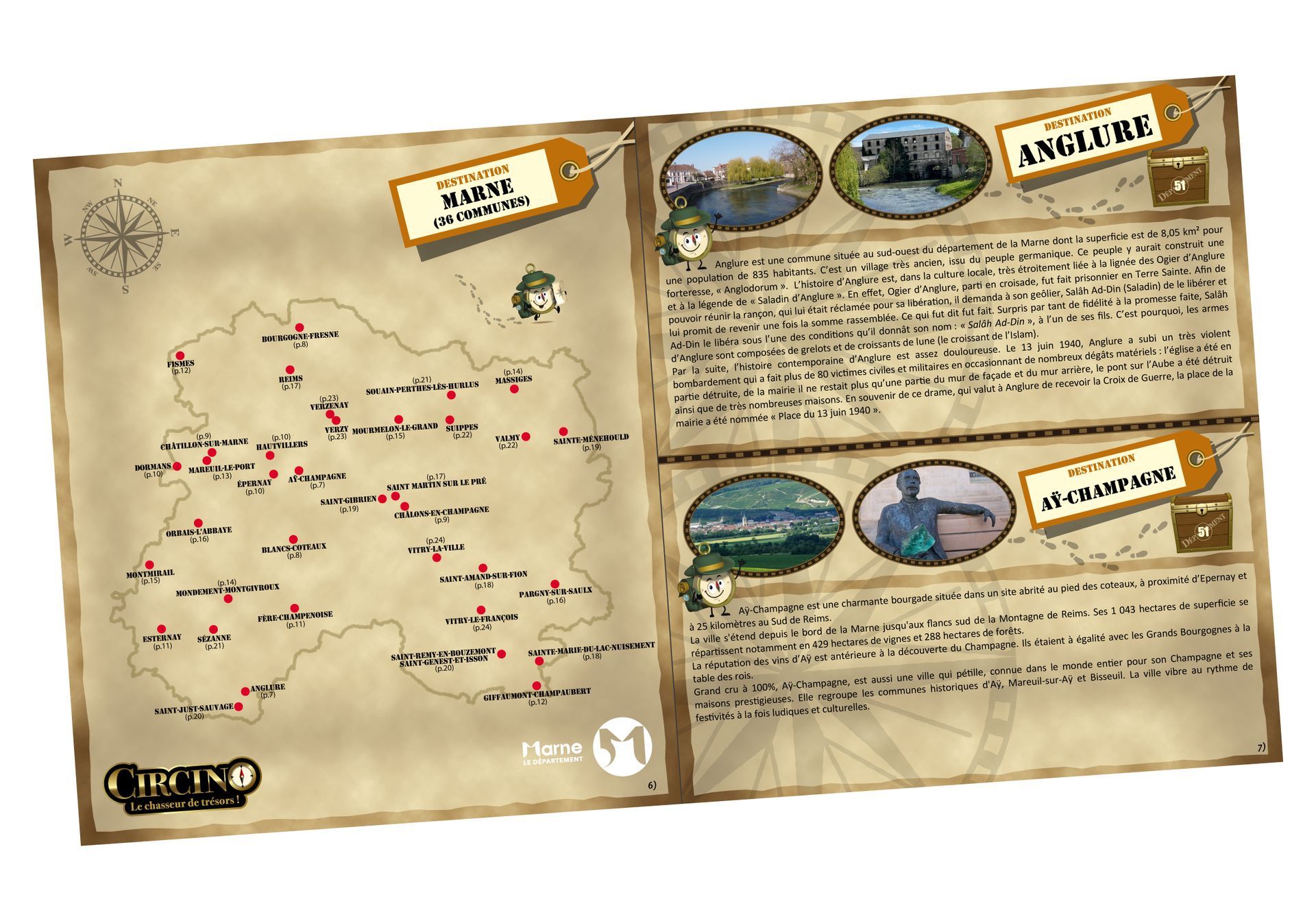 De Reims à Châlons-en-Champagne, en passant par Vitry-le-François, Sézanne, Anglure, Épernay, etc... 36 communes du département 51 occuperont une place centrale et prépondérante dans le jeu.