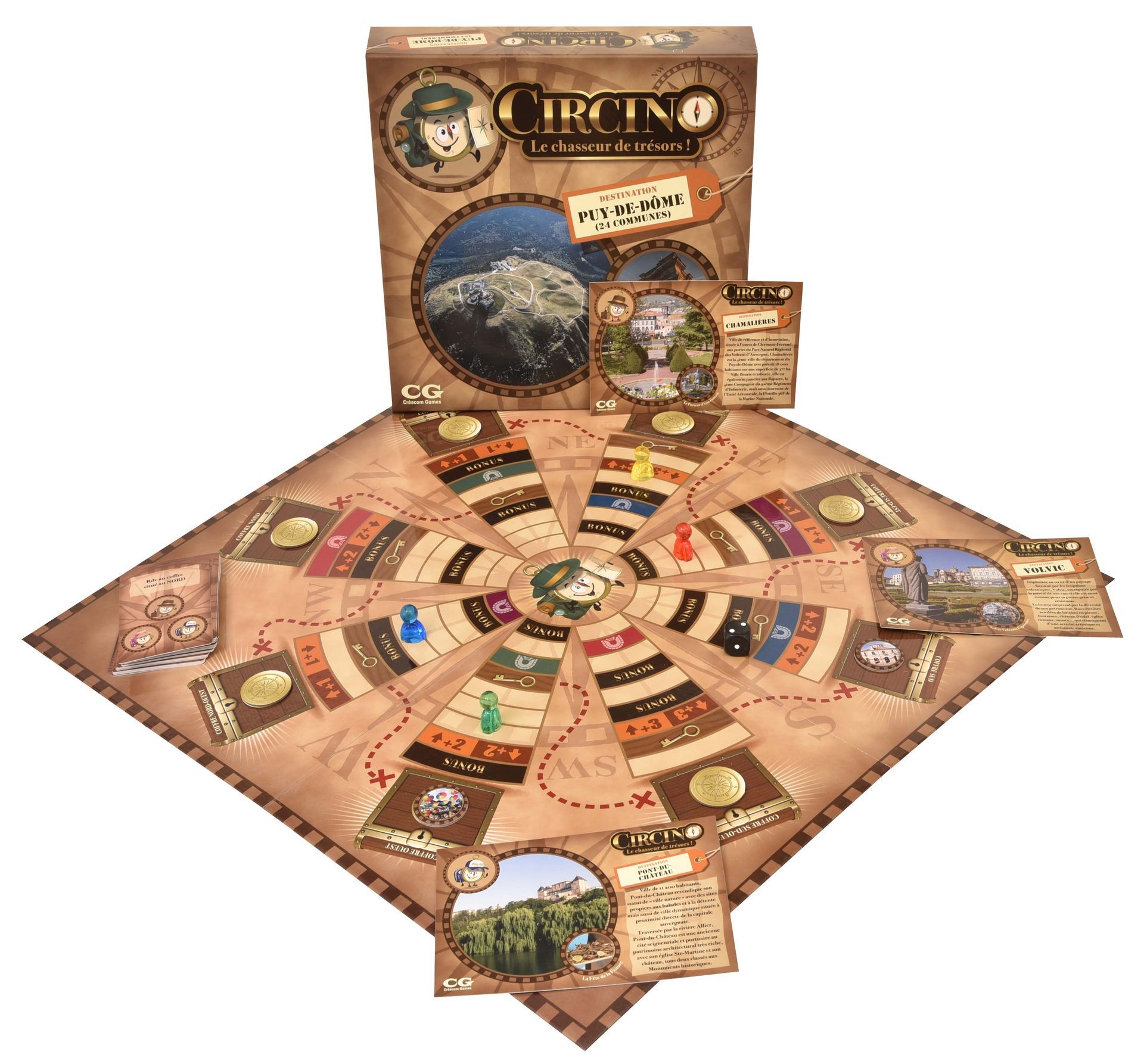 Tel est donc l'objectif recherché par ce jeu de plateau de la famille Créacom Games Circino, le Chasseur de Trésors - Destination Puy-de-Dôme... en plus de permettre aux plus petits, leurs parents et leurs grands-parents d'occuper d'agréables moments de partage dans la convivialité et la bonne humeur.